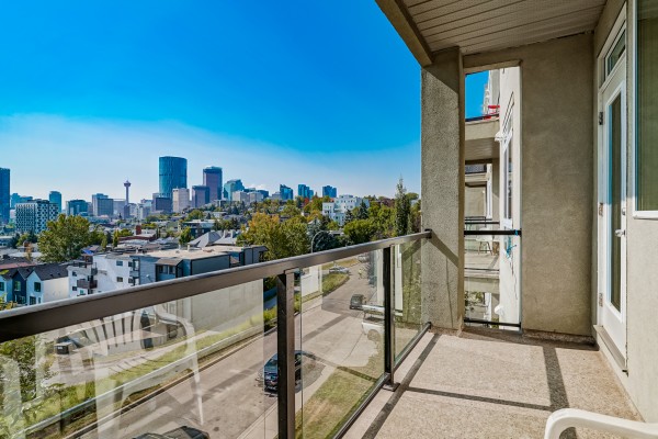 From the balcony, the city lays itself out like a story told in glass and steel. The Calgary Tower, the tall blue panes, the red blocks of downtown — they rise from the streets and catch the morning sun, while evenings bring the quiet glow of lights against the prairie sky. It is a view that holds you, both grand and near, changing with each hour, always alive.