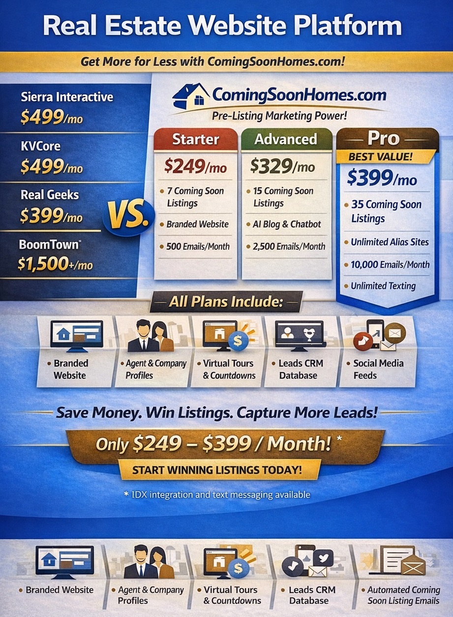 Most agents are overpaying for a website that does nothing to help them win listings. Runs on your custom domain, establishing your local Brand sellers recognize. Works alongside or replaces your current site. Often costs less than your current website.